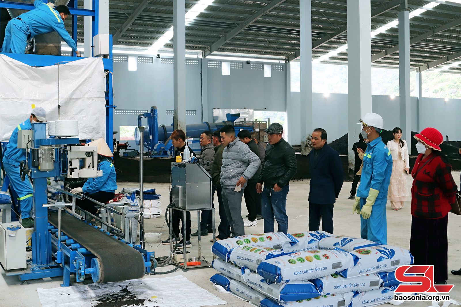 Khách hàng tham quan dây chuyền sản xuất phân bón hữu cơ vi sinh.