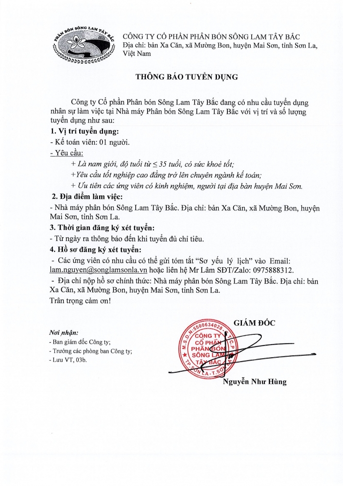 2022 © by CÔNG TY CỔ PHẦN PHÂN BÓN SÔNG LAM TÂY BẮC