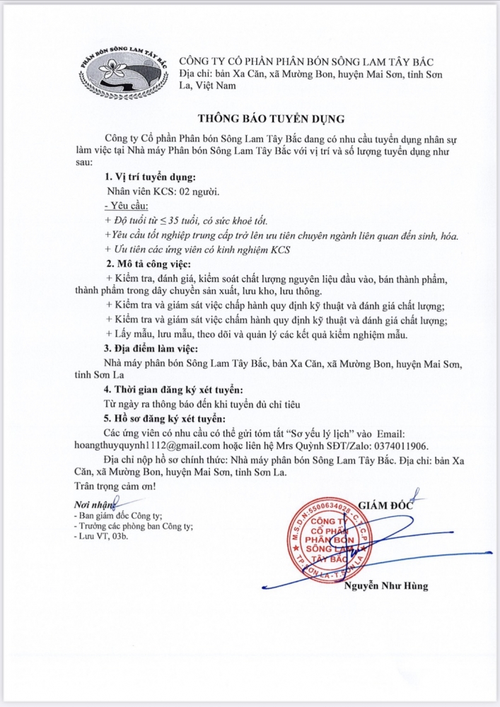 2022 © by CÔNG TY CỔ PHẦN PHÂN BÓN SÔNG LAM TÂY BẮC