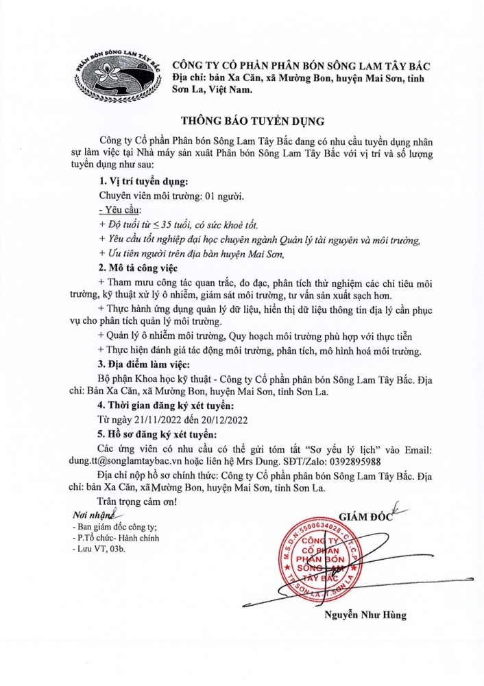 2022 © by CÔNG TY CỔ PHẦN PHÂN BÓN SÔNG LAM TÂY BẮC